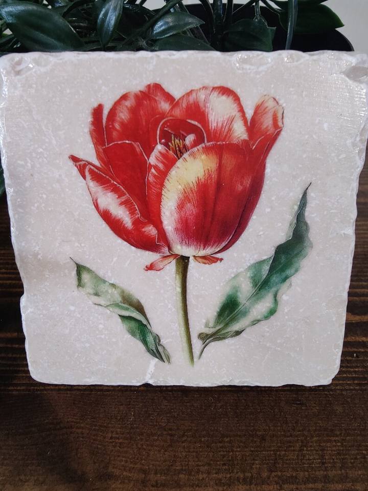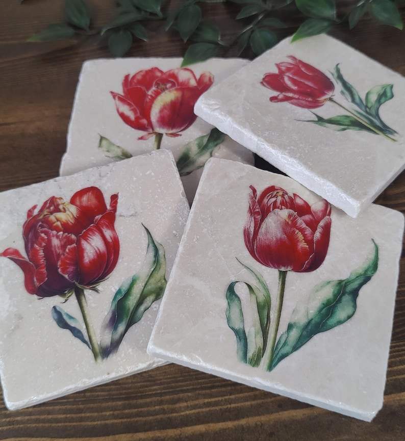 Sous-verres à fleurs de printemps, sous-verres rouges à motif floral, cadeau pour les amateurs de thé, de café et de gin