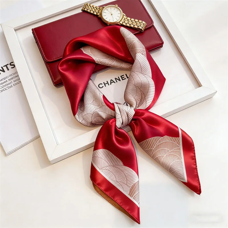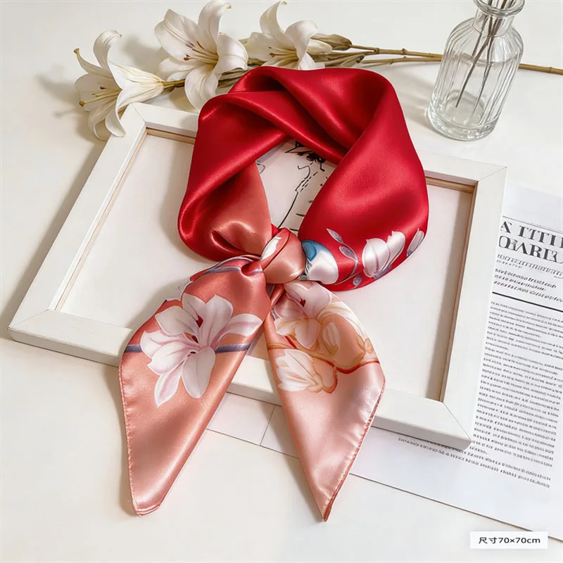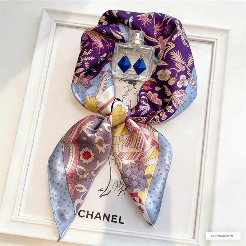 Écharpe en soie imprimée élégante pour femme, foulard carré en satin doux, châle pour femme, hijab, bandana 70x70 cm