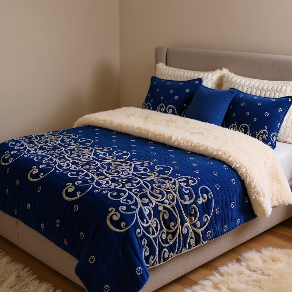 Couverture en peau de mouton Spring King, taille Queen, matelassée, motif floral, style classique, pour usage domestique