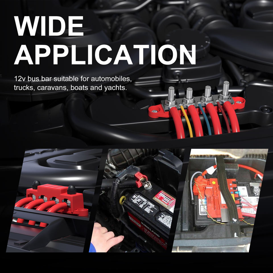 Bloc de jonction en cuivre à ressort, 4 goujons M10, 250A 48V, barre omnibus robuste, base en nylon, bloc de distribution d'alimentation pour voiture