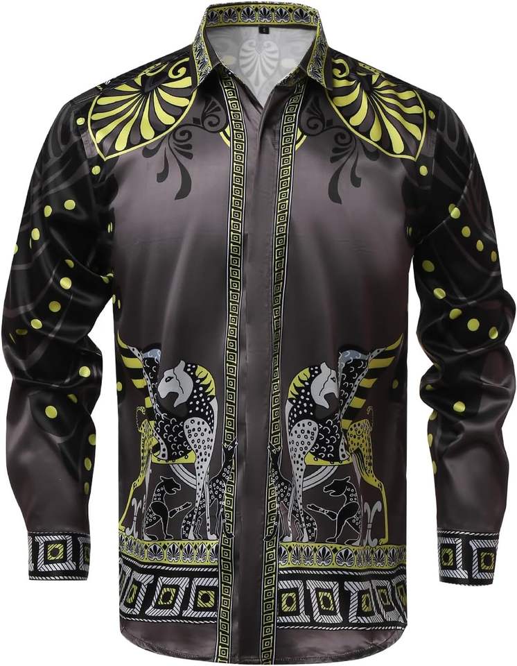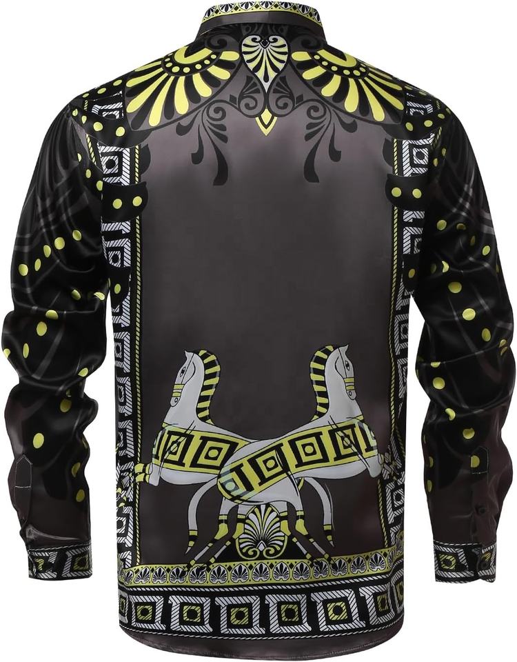 Printemps hommes chemises décontracté 3D impression numérique à manches longues hommes chemises habillées col rabattu hommes fête sociale hauts