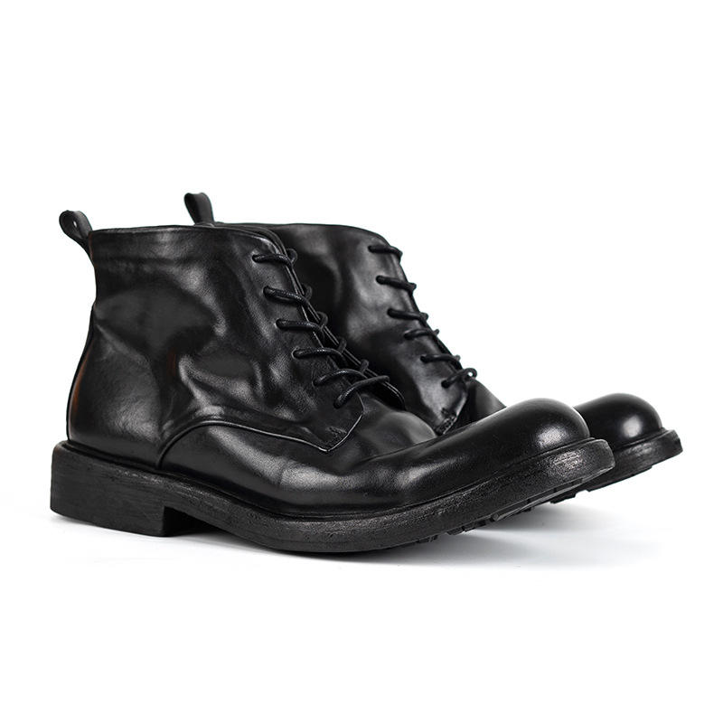 Nouvelles bottes de moto pour hommes en cuir véritable à talons épais de style britannique rétro à lacets croisés printemps