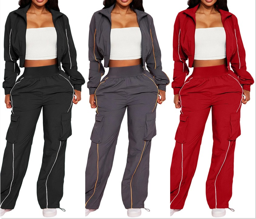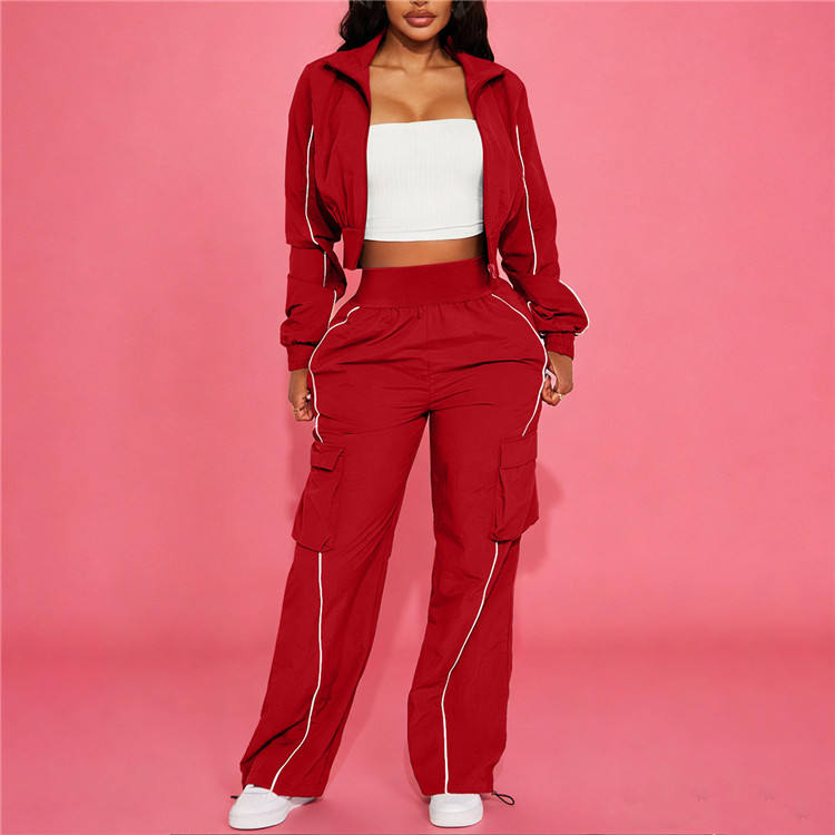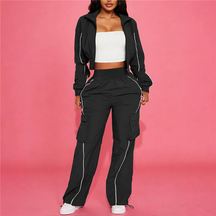 Nouvelle Collection Printemps : Ensemble Deux Pièces Femme – Haut Court à Manches Longues Rayé avec Poches et Pantalon