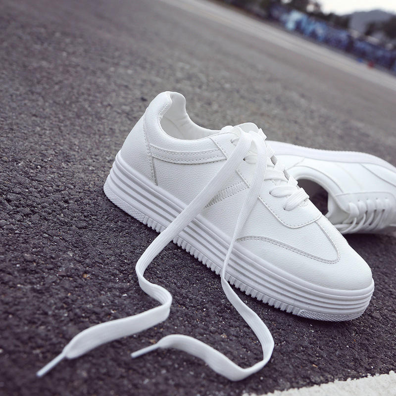 Spring New Low Top Essential Pu Leather White Flat Platform Women's Casual Sneakers