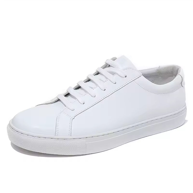 Baskets blanches en cuir véritable pour hommes, chaussures plates de style coréen avec adéquation polyvalente, chaussures blanches décontractées
