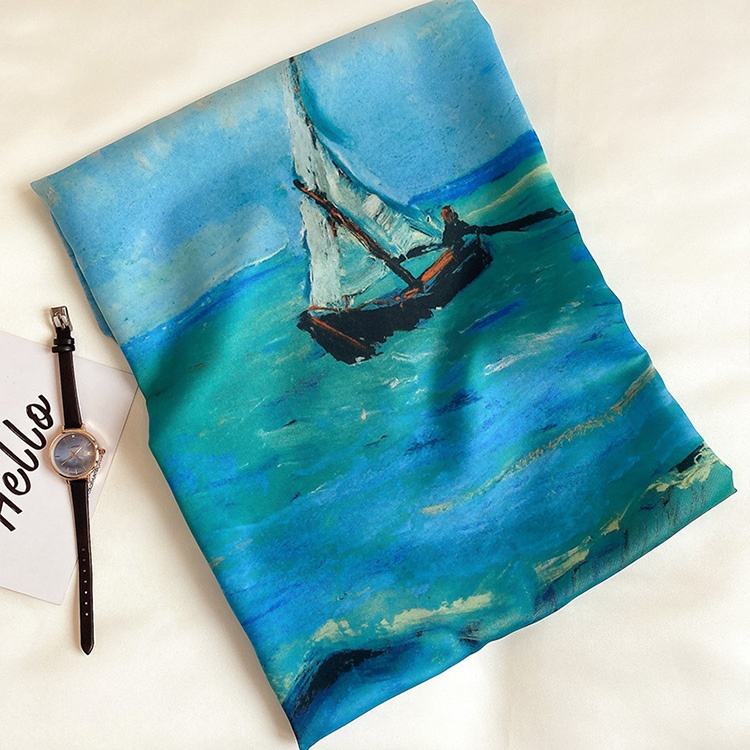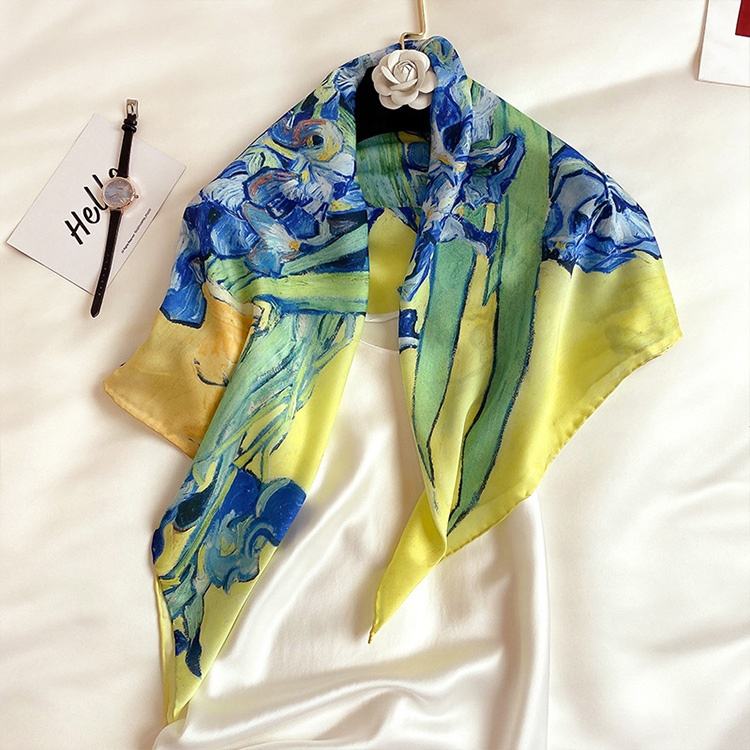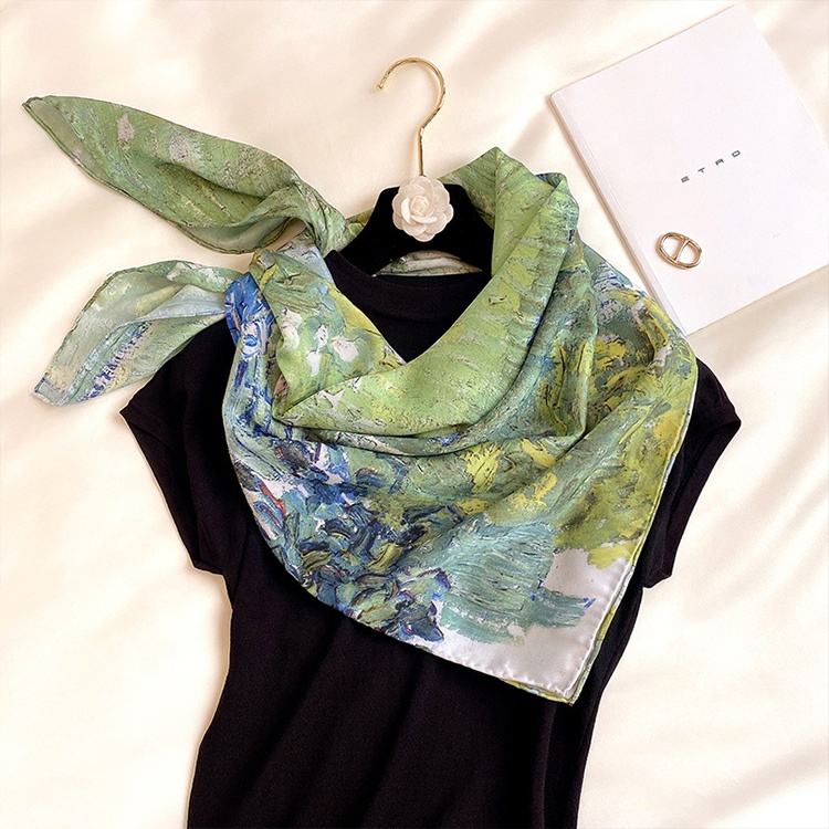 Printemps nouvelle peinture à l'huile conception grand carré hijab écharpe femme littérature et art rétro écharpe à la main vintage châle foulard en soie