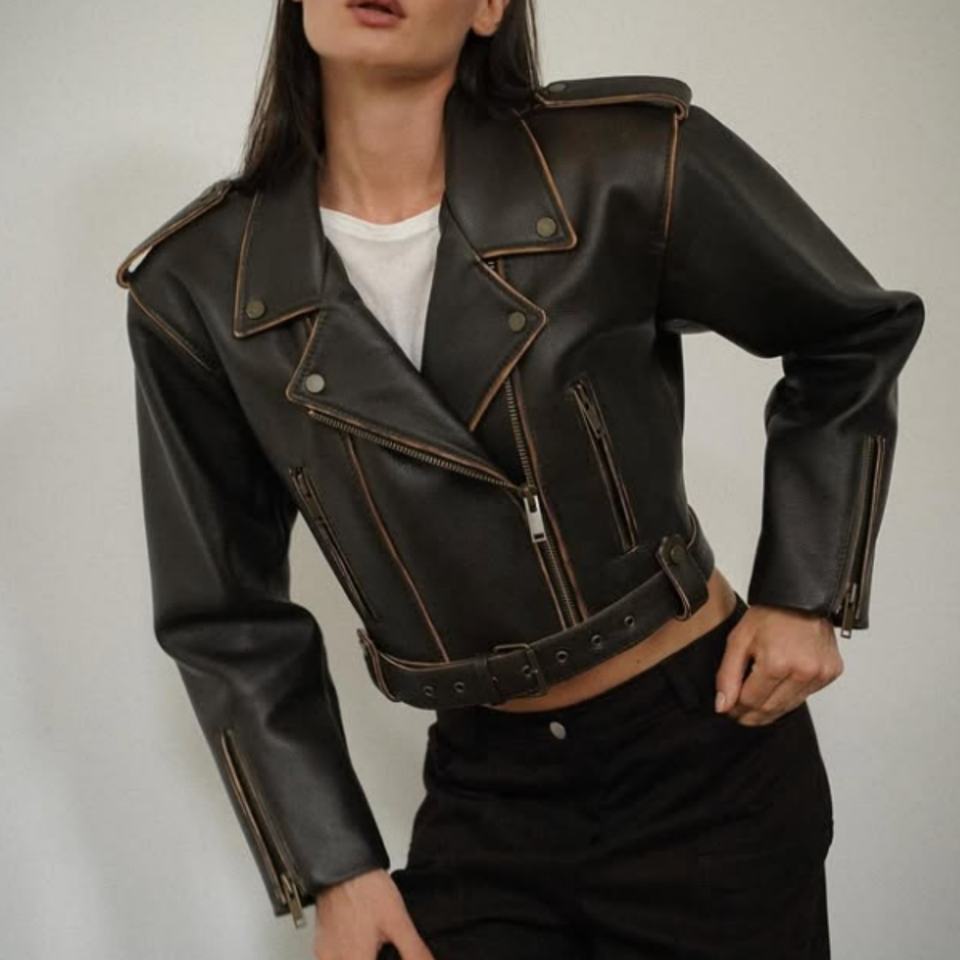 Nouvelle veste en cuir véritable pour femme, style motard, effet vintage délavé et vieilli, avec fermeture éclair, type bomber