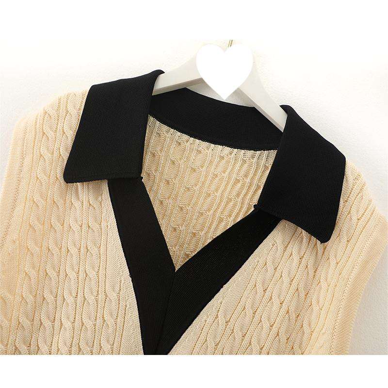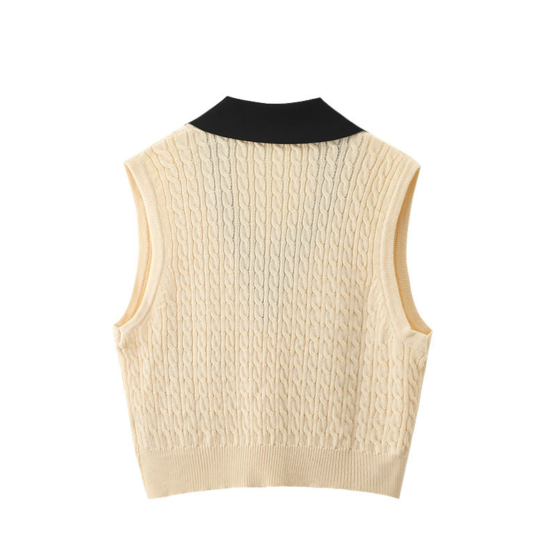 Printemps Nouveau v Col Rabattu Contraste Couleur Gilet Tricoté Avec Poches