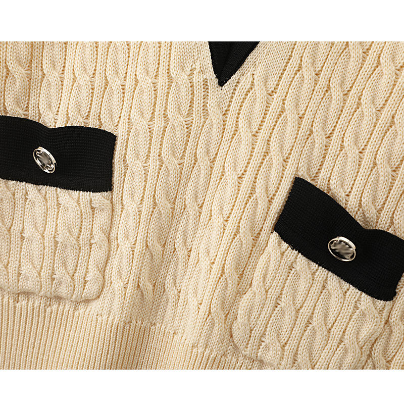 Nom du produit:Printemps nouveau v tourner vers le bas col contraste couleur tricoté gilet avec poches