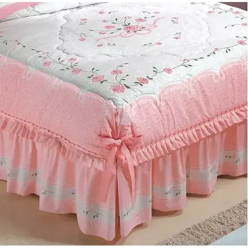 Ensemble de couette de printemps taille individuelle, fleurs roses brodées, style princesse, literie pour la maison toute saison, 2,2 m x 1,4 m, coton et polyester