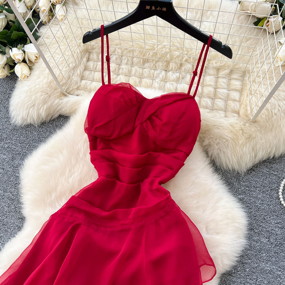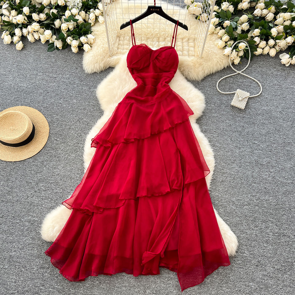 Printemps romain sans bretelles asymétrique tunique plissée robe mi-longue pour les femmes robe en dentelle à volants