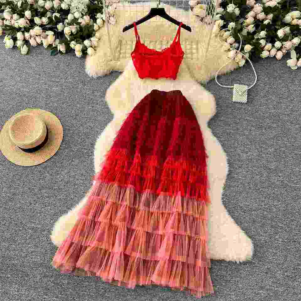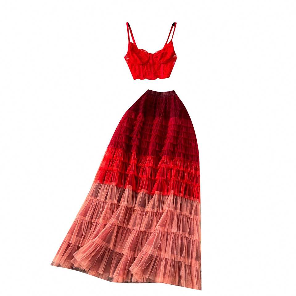 Ensembles Printemps Femme Style Romain : Haut et Jupe Midi Taille Haute Unie en Dentelle Tissée – Vente en Gros