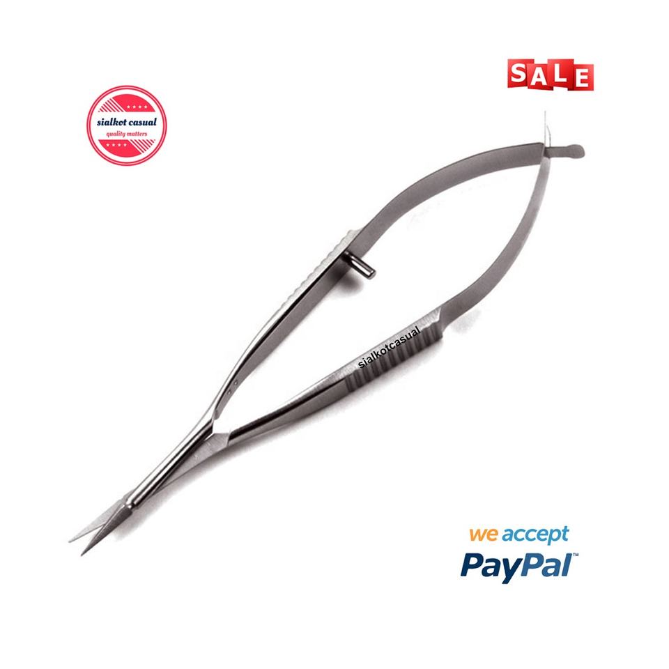 Ciseaux à ressort Ciseaux Vannas Taille 3 "(8cm) Pointes droites Ciseaux SuperCut Poignée à ressort ronde Base de la chirurgie