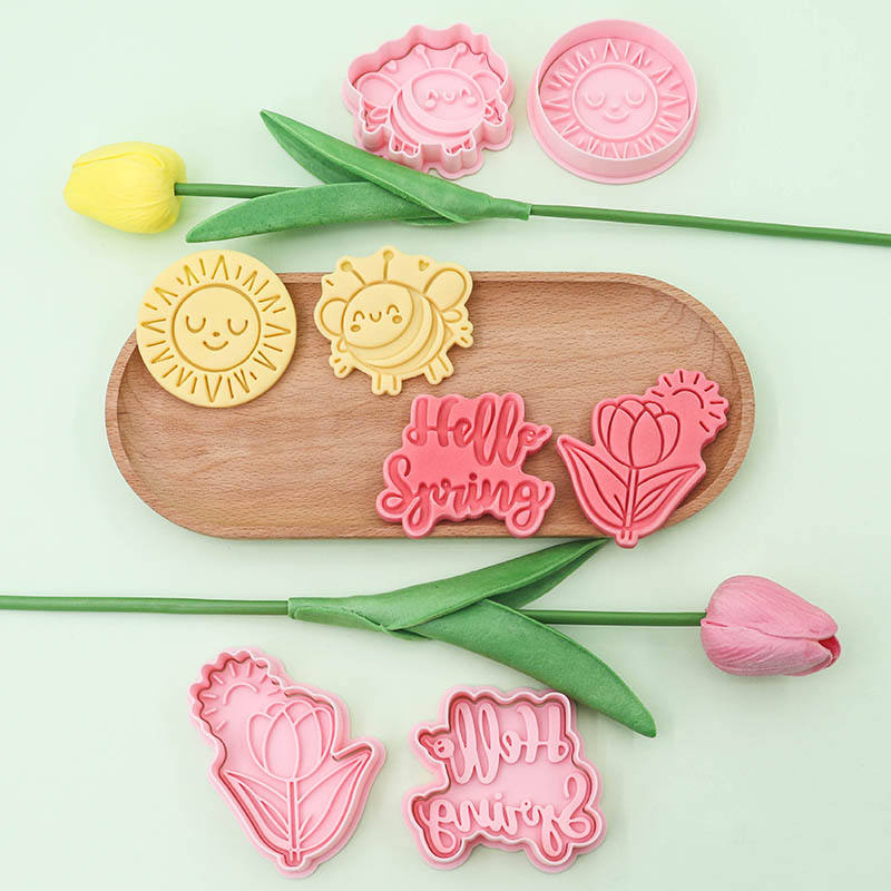 Printemps série en plastique écologique Biscuit moule fleur soleil abeille 3D dessin animé bricolage mignon imprimé emporte-pièces