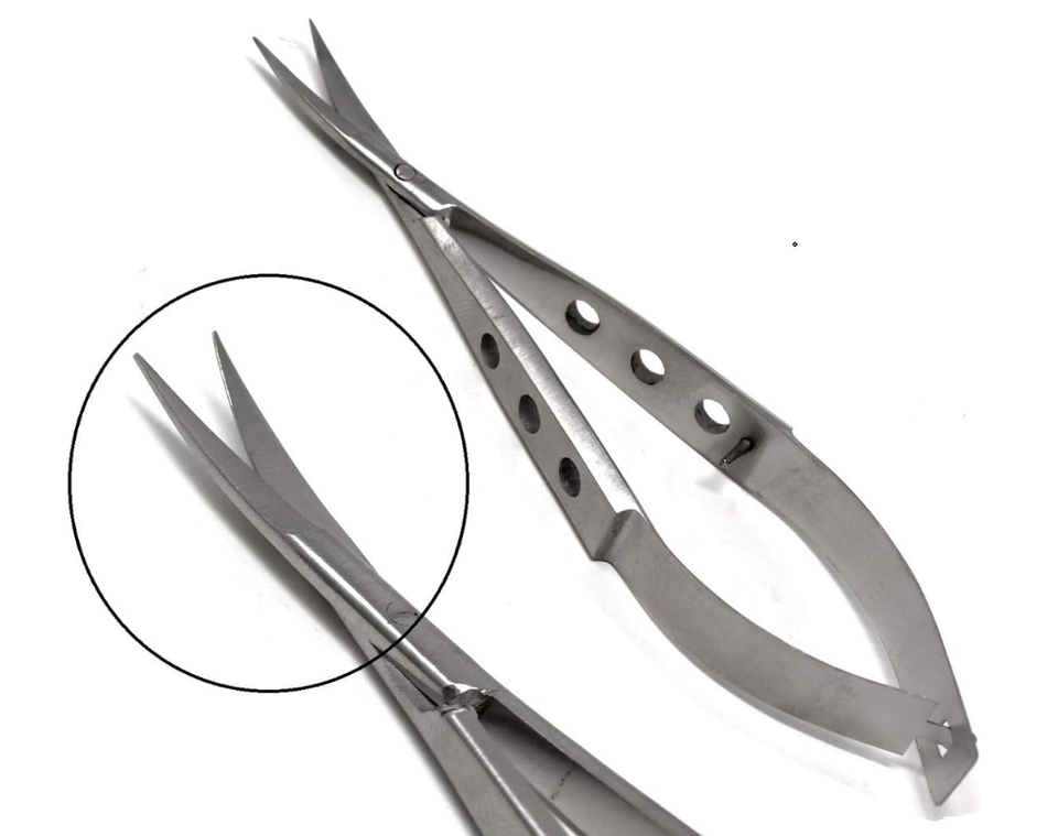 Micro ciseaux à point de printemps 3.5 "courbé, manche plat fenêtré