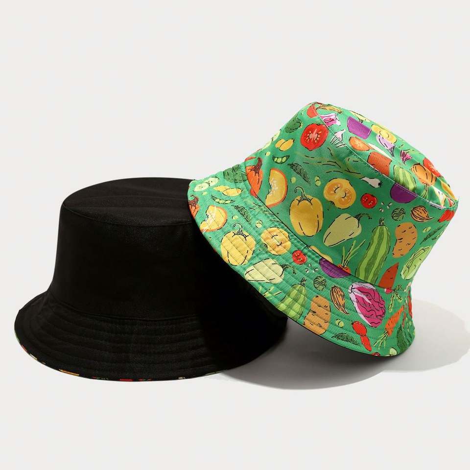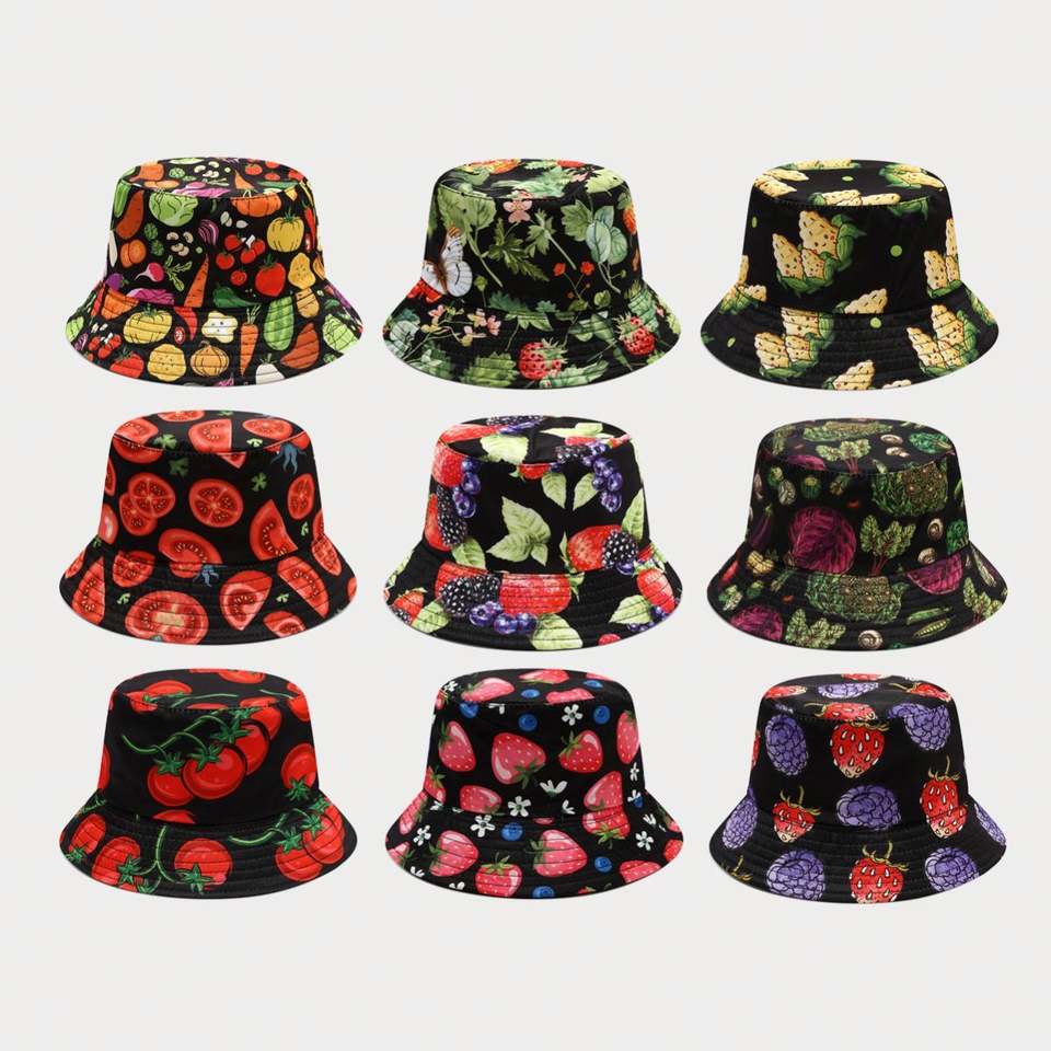 Chapeau de soleil de plage printemps-été, motif fruits et légumes, chapeau de pêcheur tendance pour femme et fille, chapeau bob réversible mignon pour l'extérieur