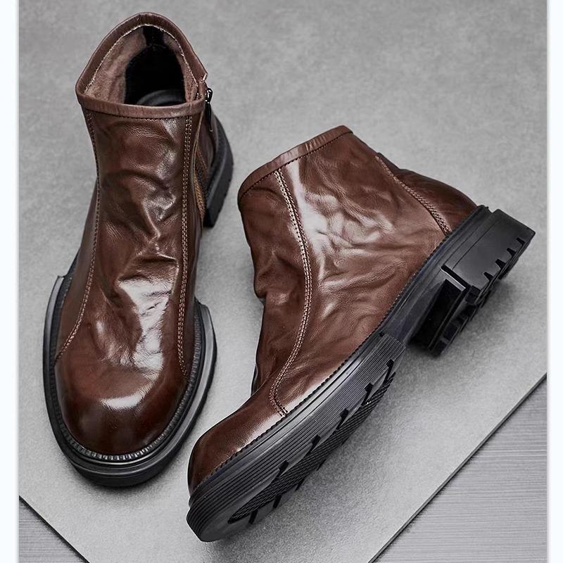 Bottes montantes décontractées en cuir véritable pour hommes, tendance printemps-été, avec fermeture éclair latérale, pour l'extérieur