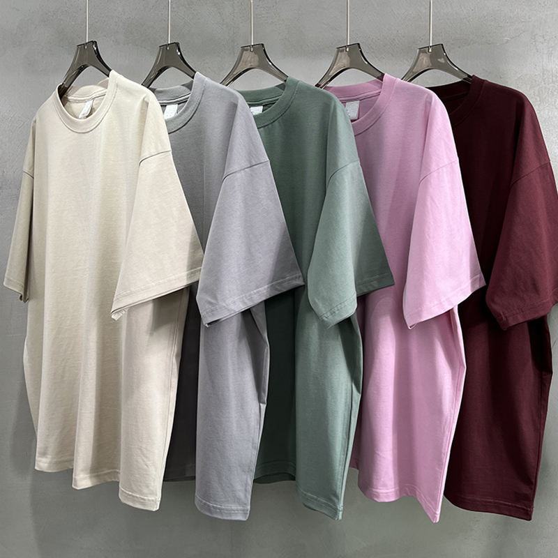Printemps été nouveau conçu 100% coton lourd T-shirt couleur unie lâche hommes manches courtes lavé soleil T-shirt pour hommes