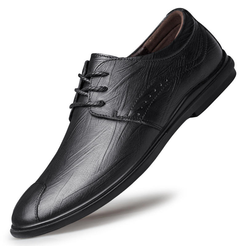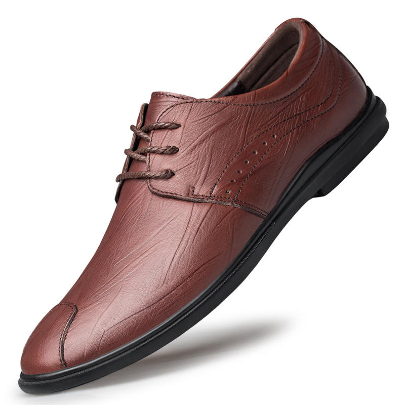 Nouvelles chaussures habillées en cuir véritable ajourées à lacets pour le printemps et l'été | Chaussures en cuir décontractées respirantes pour hommes grandes tailles