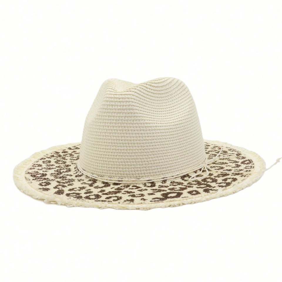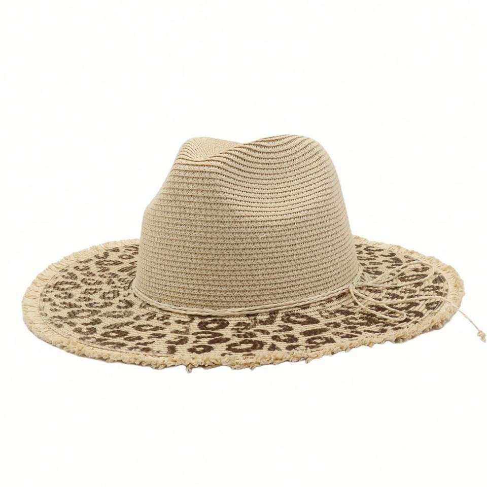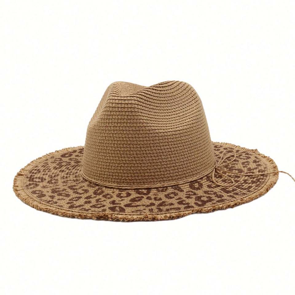 Chapeau de paille imprimé léopard, nouvelle collection printemps-été, protection solaire, pour hommes et femmes, idéal pour la plage et les voyages en extérieur