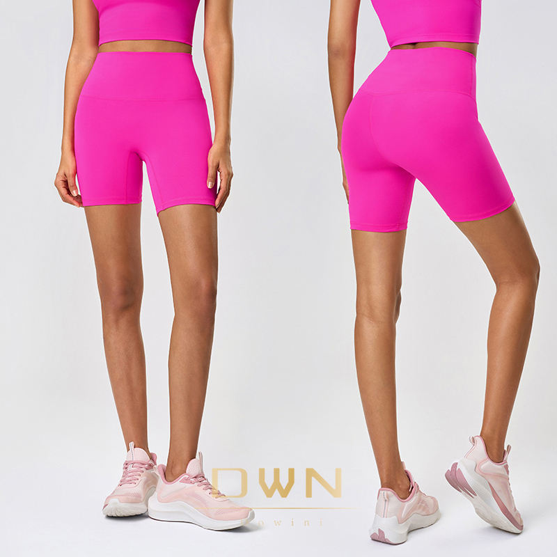 Shorts de yoga sans couture printemps-été avec poche avant à la taille, double face brossée, couleur unie, ajustés, élastiques, pour fille