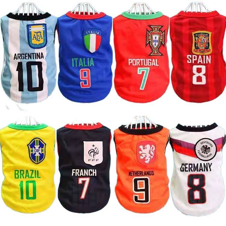 Gilet pour chien de compagnie Coupe de football Printemps-Été, motif rayé et lettres, en polyester respirant à séchage rapide, style décontracté, vêtement de football
