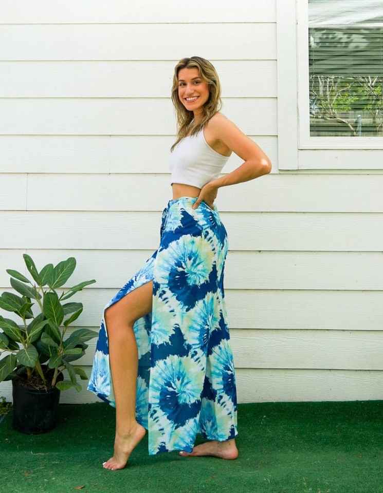 Printemps été femme cravate teinture ample jambe droite pantalon décontracté longueur au sol pantalon pour vacances plage vacances Dori Palazzo pantalon