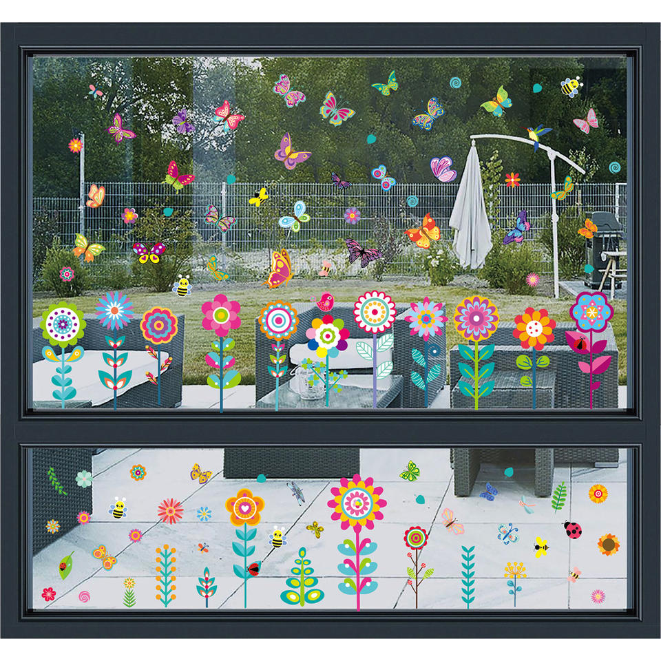 Spring Window Clings Butterfly Flower Window Stickers Colorful Summer Anti-Collision Decal Double Side Stickers Baby Shower kids