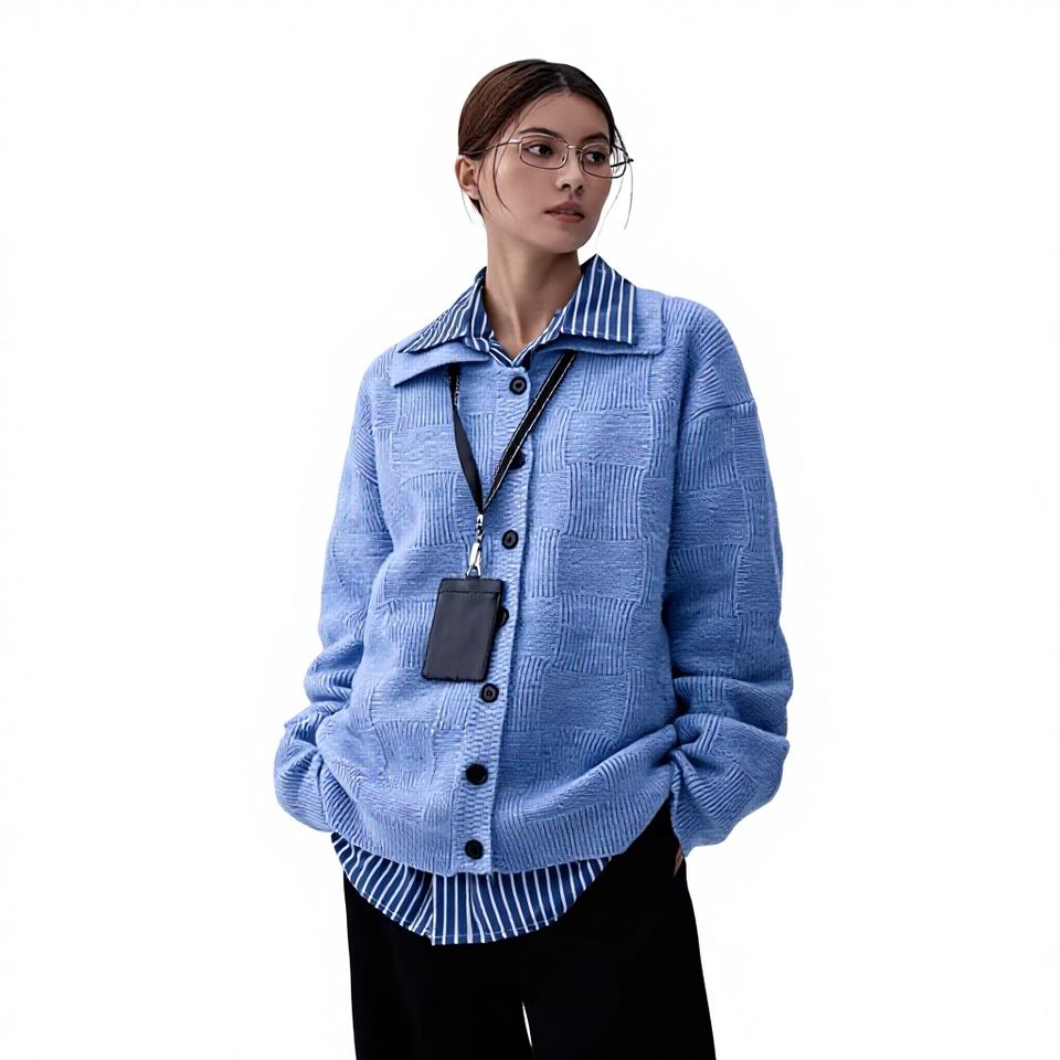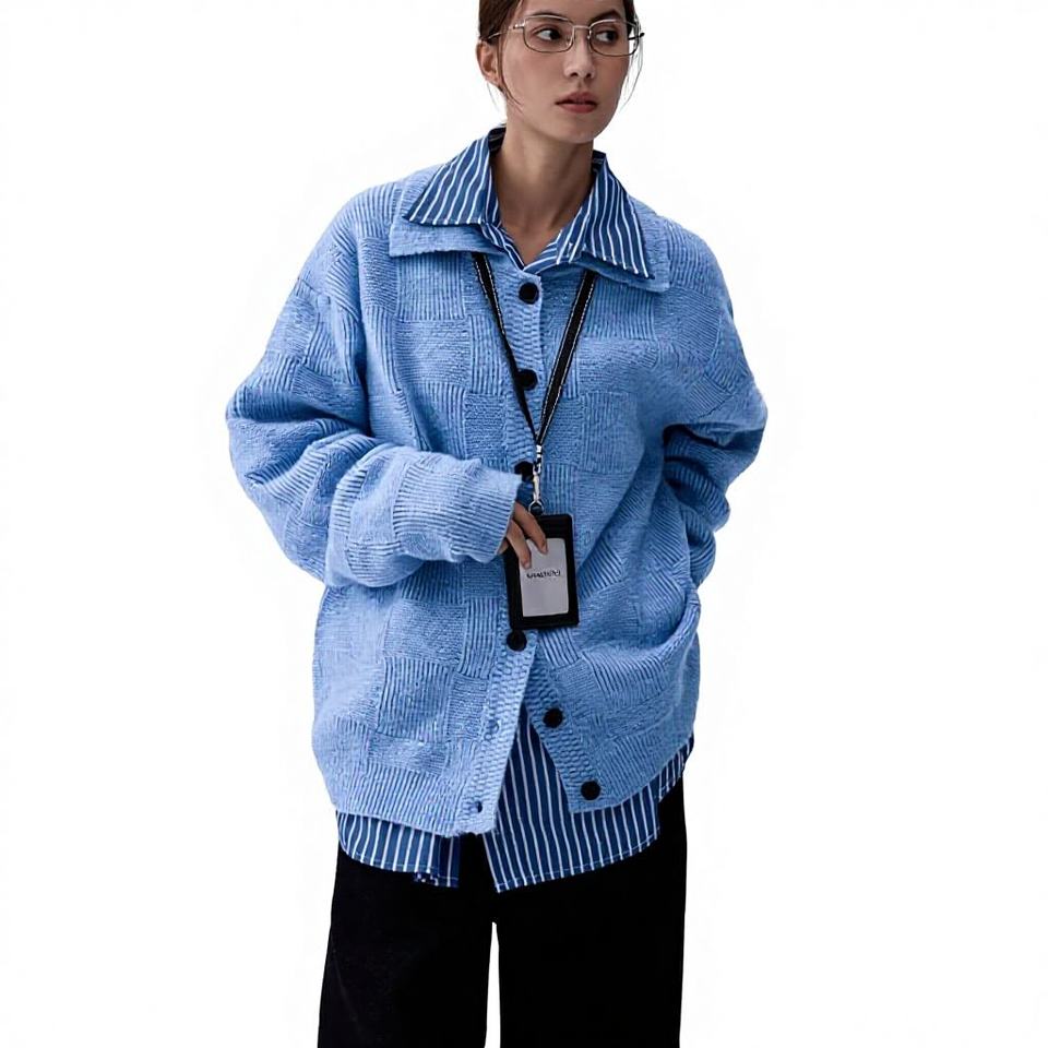 Cardigan en tricot décontracté printemps-automne, col large tendance, motif écossais, coupe ample et ajustée pour hommes et femmes