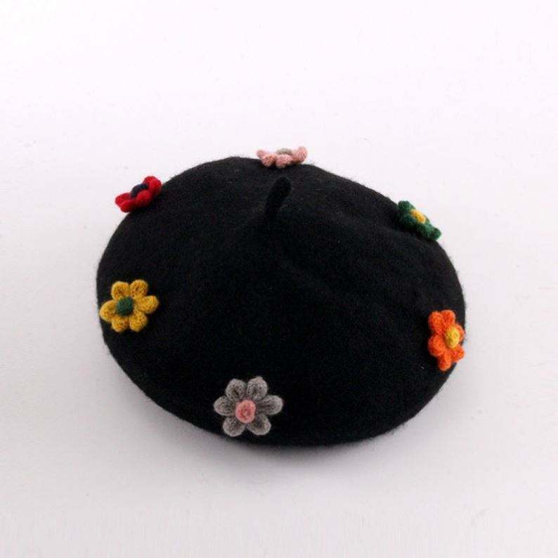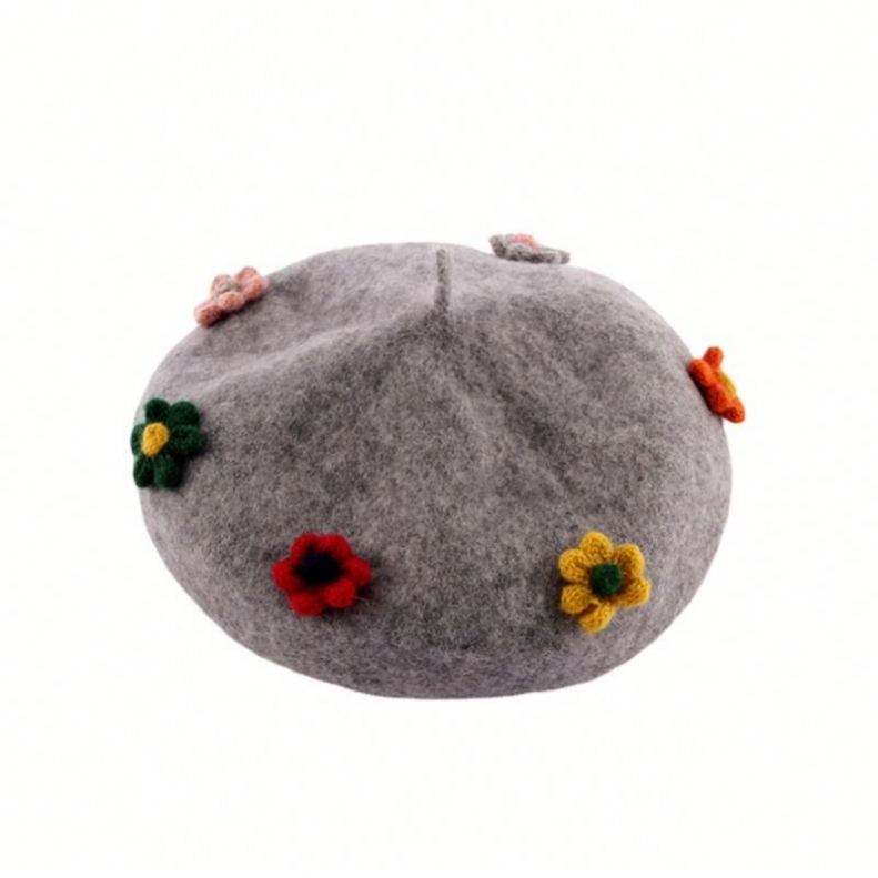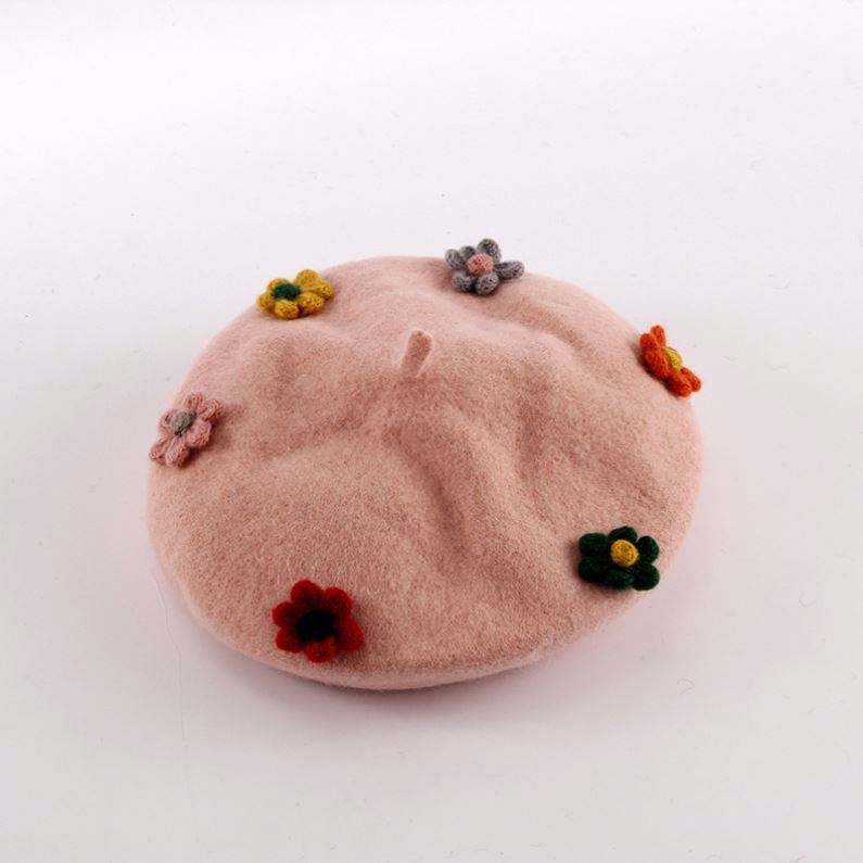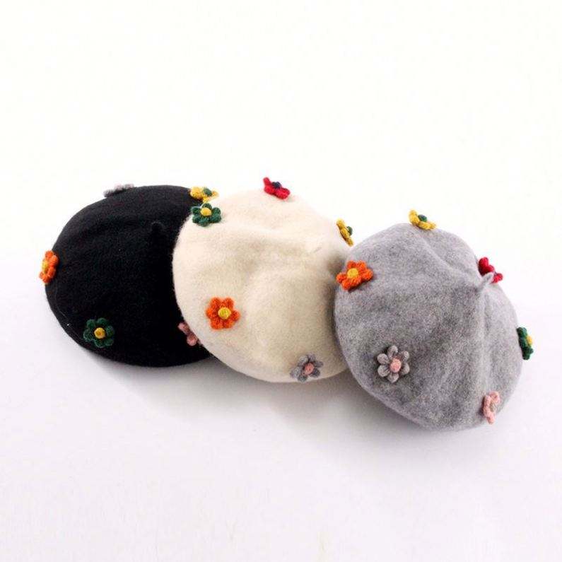 Béret chaud printemps-automne avec fleur et citrouille mignonne, style britannique, broderie 3D, pour femme, ski et plage