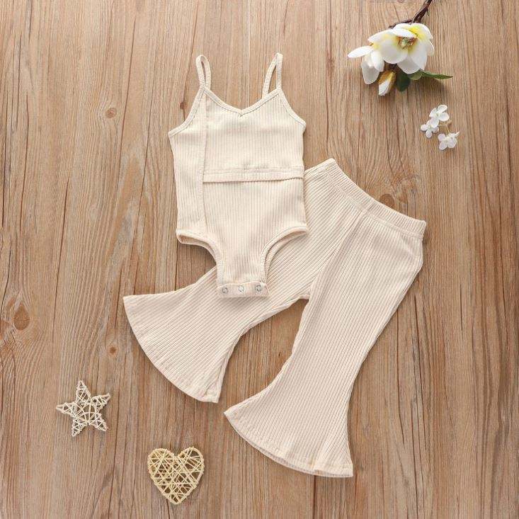 Combinaison à bretelles unie pour bébé fille printemps-été avec pantalon cloche, ensemble de vêtements pour enfant de 1 à 3 ans, combinaisons pour bébé fille en gros