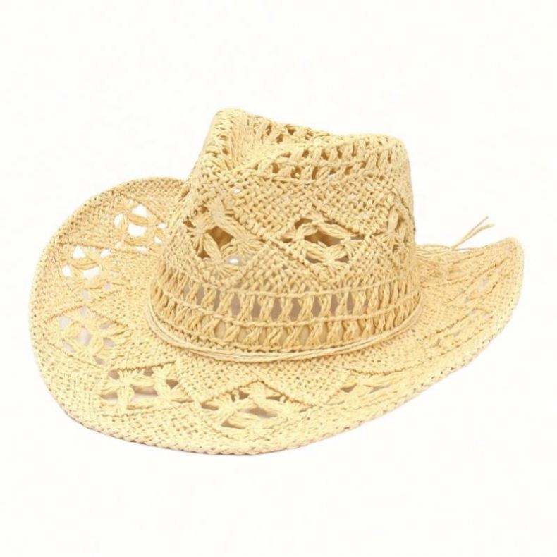 Chapeau Sombrero Creux Tressé à la Main Respirant et Frais pour Printemps et Été, Style Jazz Américain, Idéal Plage, Sports, Voyage, Personnalisable