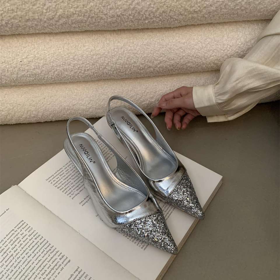 Sandales à talons hauts fins en dentelle toutes saisons avec bride à la cheville, en cuir véritable, fermeture à boucle, bout pointu, élégantes et sexy pour femmes