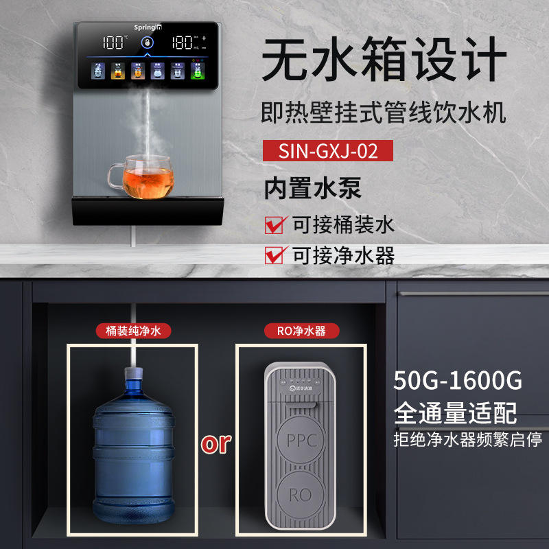 Distributeur d'eau mural Springin 180 ml, eau chaude instantanée, acier inoxydable, contrôle intelligent de la température