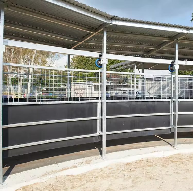 Système d'arrosage électrique avec pousseur à châssis robuste en acier pour équipement d'entraînement équin et marcheur pour chevaux