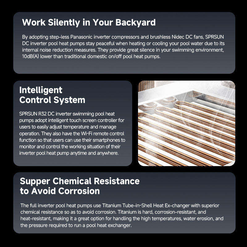 Pompes à chaleur air-eau pour piscine, super silencieuses, réfrigérant R32, Sprsun 6,5 kW-39 kW