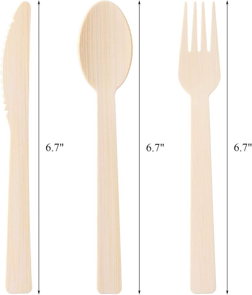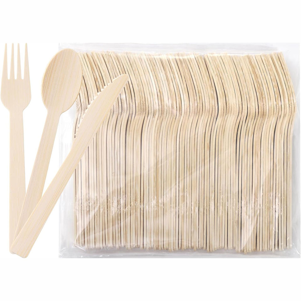 Ensemble d'ustensiles écologiques en épicéa et bouleau, couverts spéciaux en bambou et bois d'épicéa pour la restauration rapide