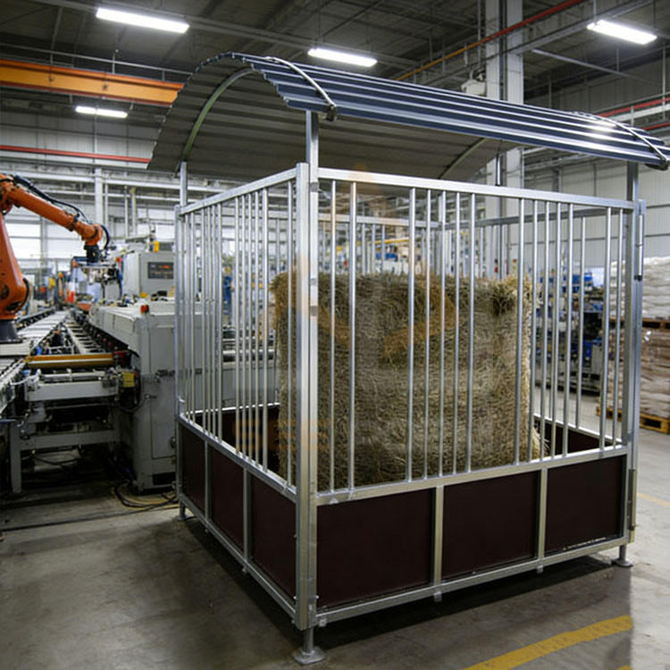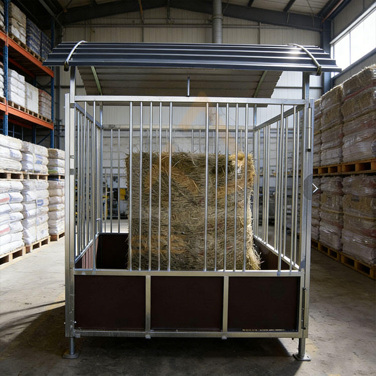 Mangeoire carrée en bois de bambou pour chevaux, avec 12 ouvertures, toit, barrières auto-bloquantes et garantie d'un an