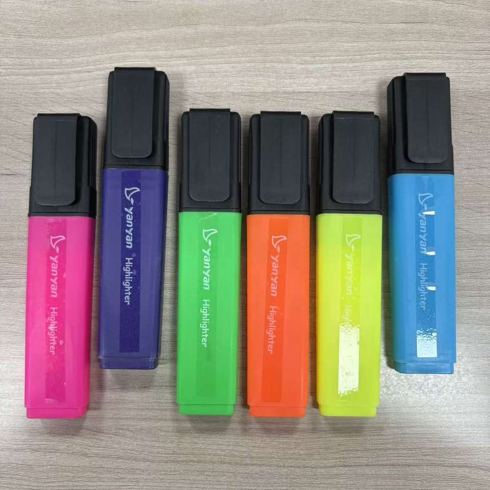 Stylos surligneurs néon jumbo à corps carré, couleurs pastel vives jaune orange rose violet vert bleu - Ensemble