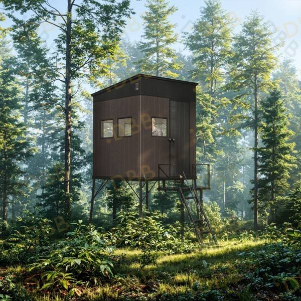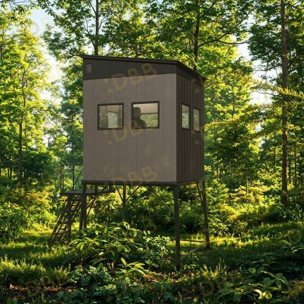 Abri de chasse surélevé à base carrée, en acier robuste, étanche, avec échelle, coque rigide, pour plusieurs personnes