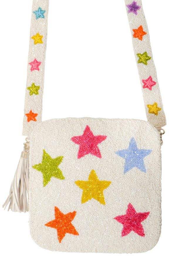 Sac bandoulière personnalisé en forme de boîte carrée avec perles blanches et lettres arc-en-ciel, large sangle perlée, pour filles, usage quotidien