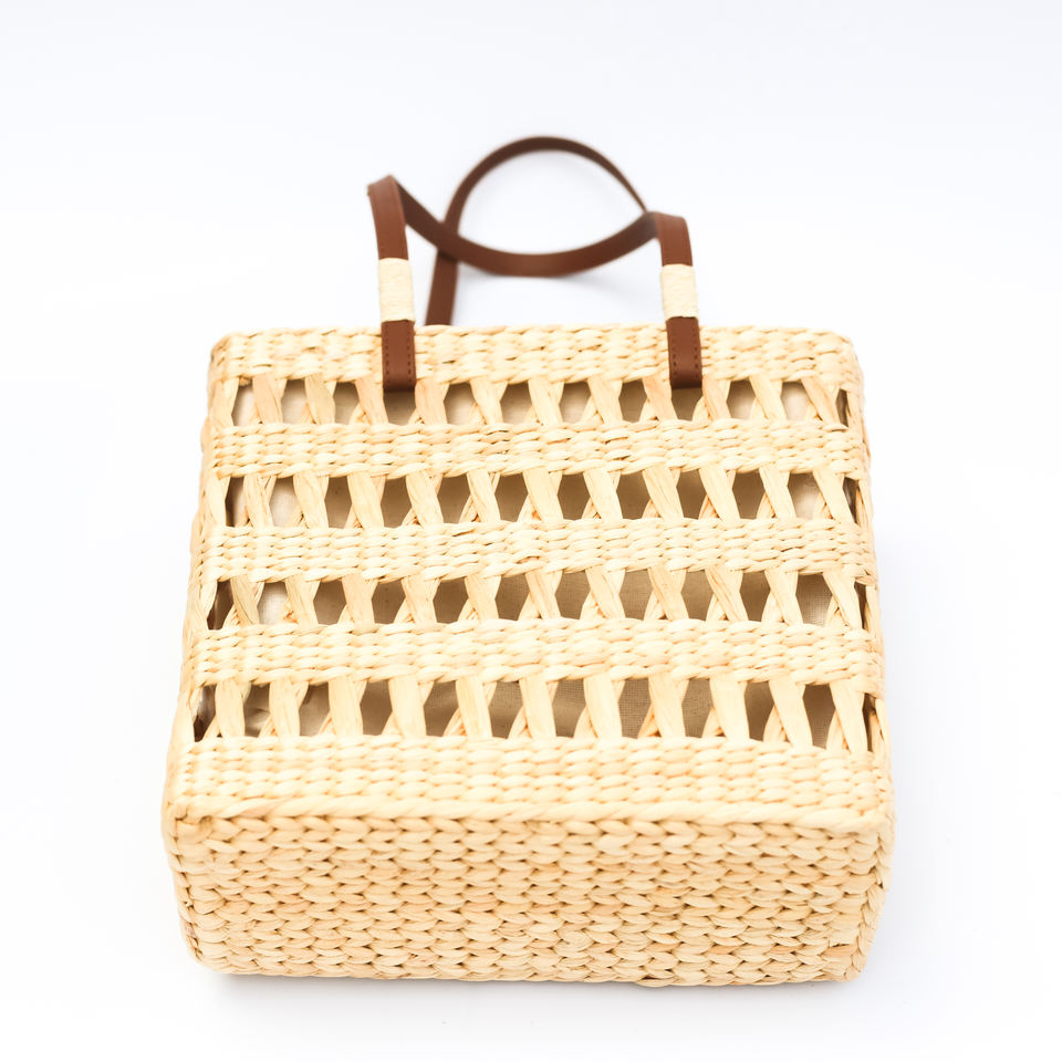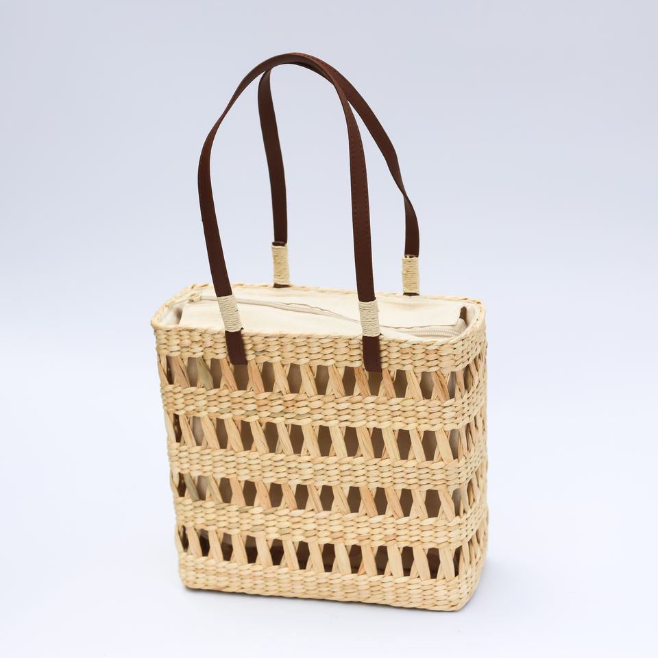 Sac carré en jacinthe d'eau tressée – Style vintage moderne avec fermeture éclair Rustique / Minimaliste moderne