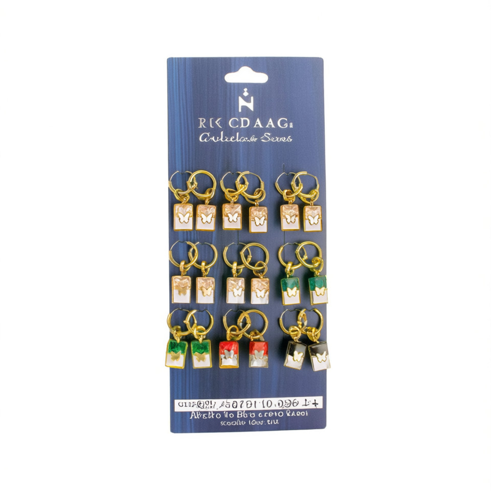 Boucles d'oreilles créoles carrées papillon, 12 paires, en acier inoxydable, or, argent, rouge, vert, noir, blanc, style classique
