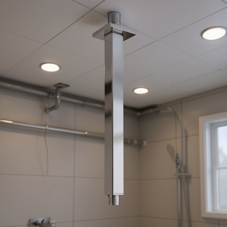 Bras de douche carré pour plafond, 30 cm, finition chromée, accessoire de salle de bain