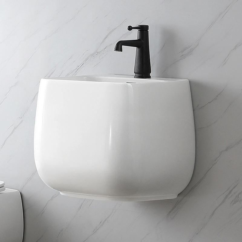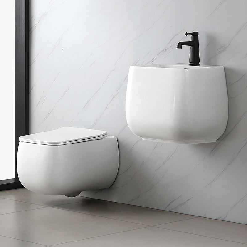 Ensemble de toilettes murales intégrées en céramique carrée P-Rap, comprenant WC, lavabo et évier