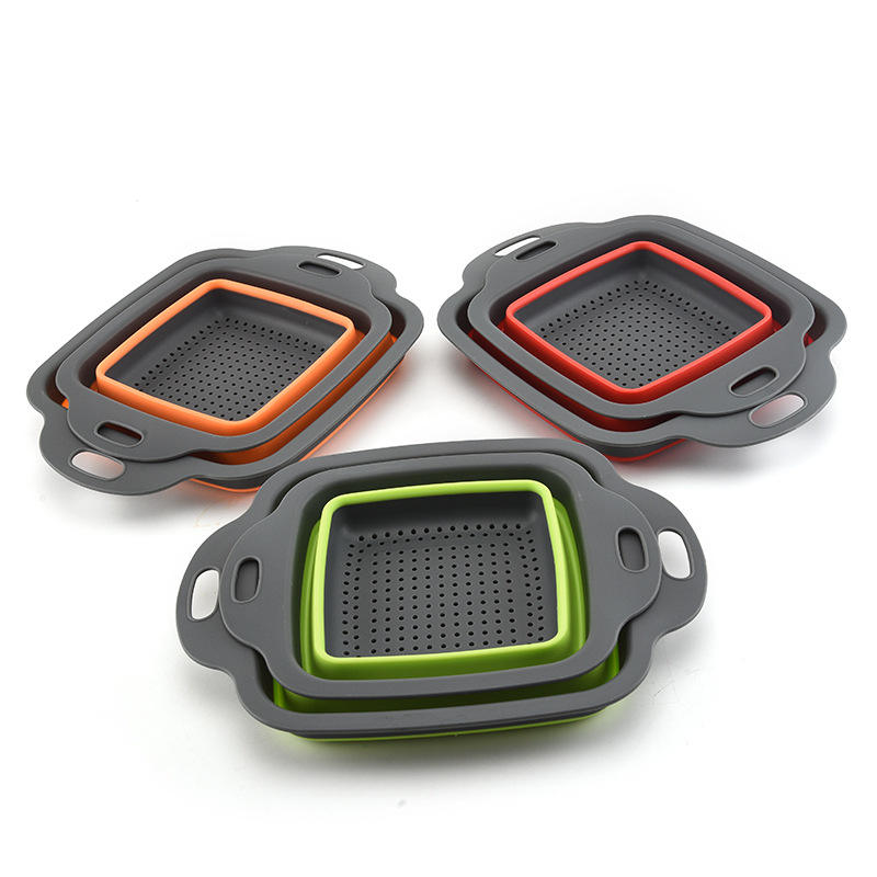 Ensemble de paniers de drainage pliables carrés taille L avec design pliable pour le lavage et le rangement des fruits et légumes