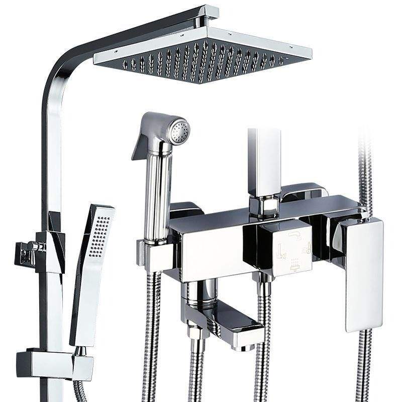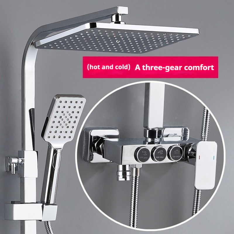 Système de douche carré à température constante ensemble de douche de salle de bain à sortie chaude et froide à quatre voies avec étagère porte-serviettes finition chromée