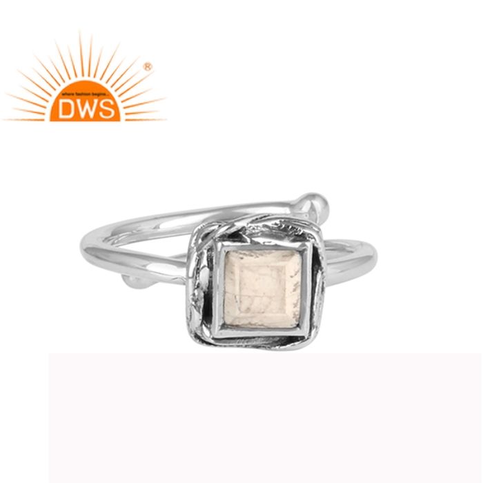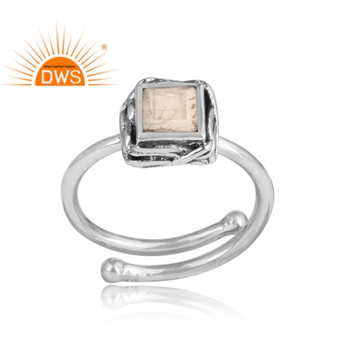 Bague ajustable carrée en argent sterling 925 avec pierre précieuse howlite taillée en carré, fabricant de bijoux sur mesure