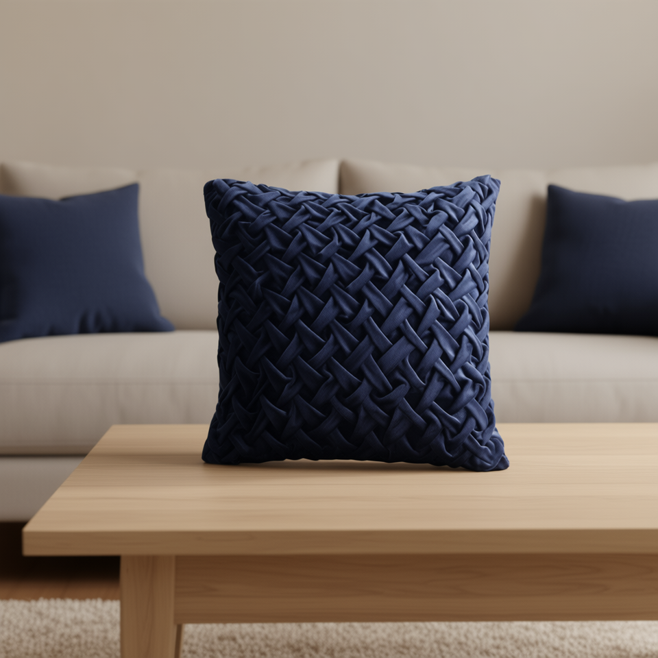 Coussin décoratif carré en velours tissé bleu marine uni, style moderne, 18x18 pouces, décoration d'intérieur