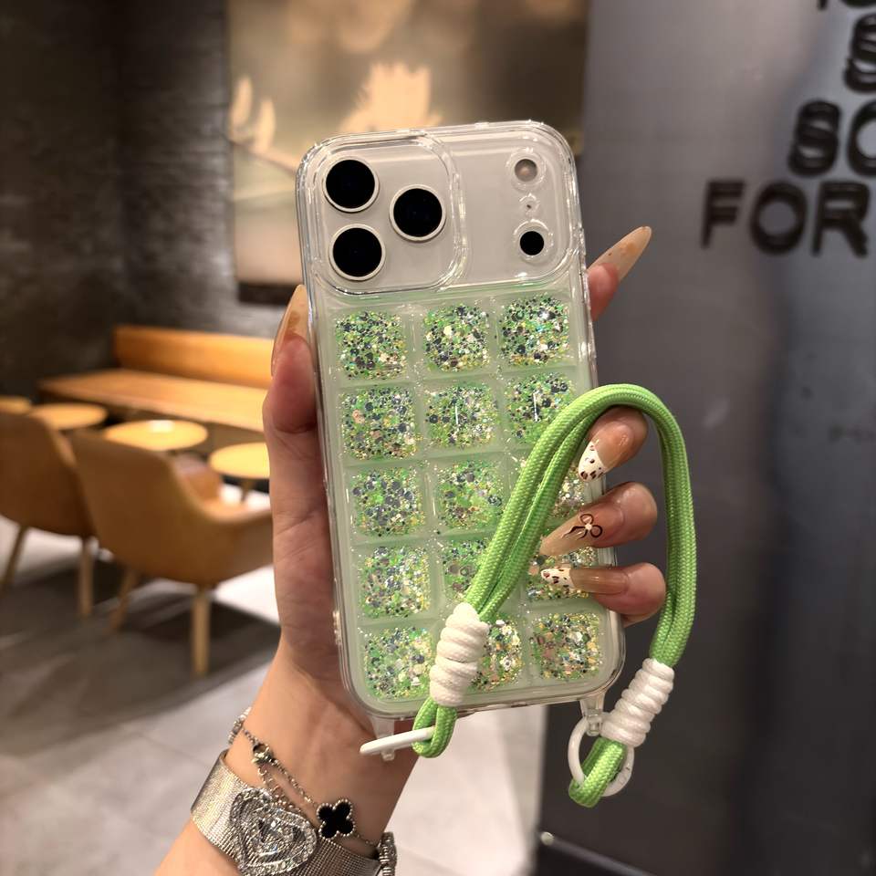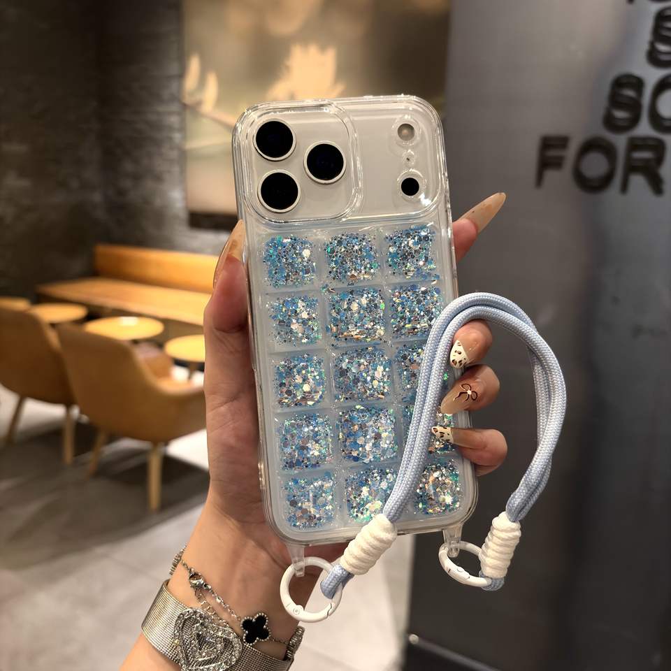 Coque de protection pour iPhone 17 Pro, motif bloc de glace teinté, avec cordon de suspension et finition poudre libre, compatible avec Apple 17 Air